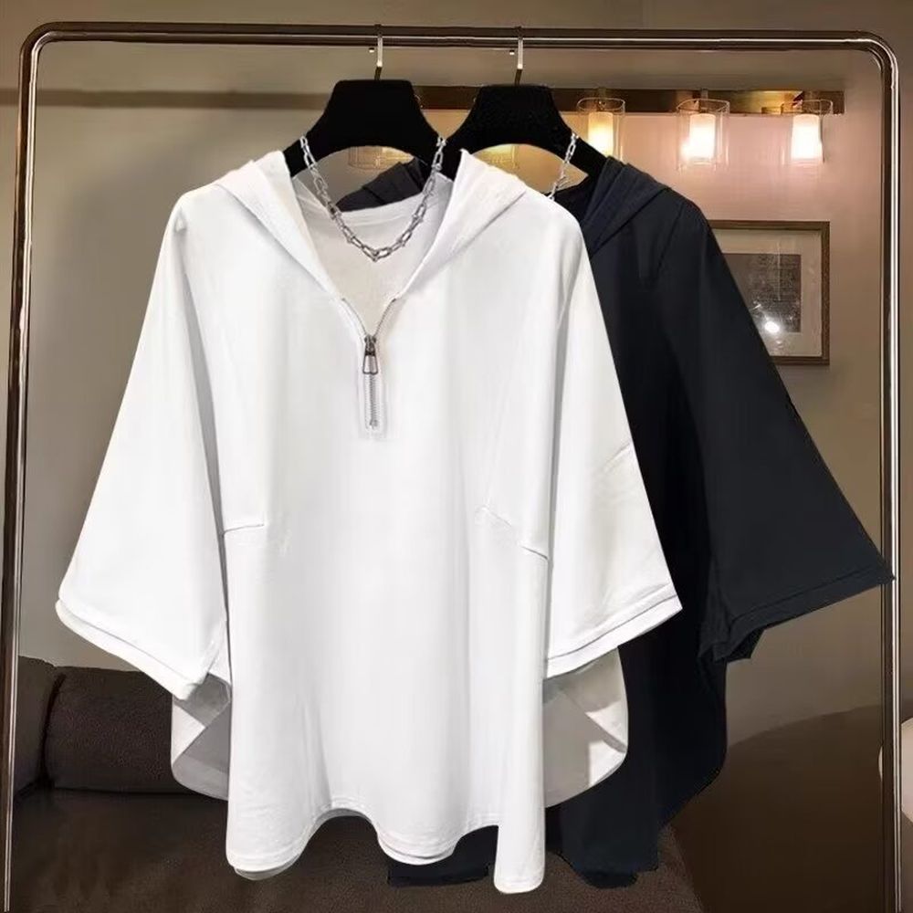 Men's Summer Bat Sleeve Short-Sleeved T-Shirt With Hoodie
